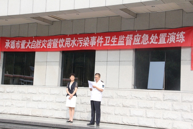 为提升承德市各级卫生监督执法机构处置突发饮用水污染事件的快速反应和应急处置能力,确保承德市饮用水卫生安全,7月6日上午,在市卫计委的统一部署下,承德市各县、区12支演练队伍在承德市锦江文冠饭店参加2017年重大自然灾害暨饮用水污染事件卫生应急处置演练。